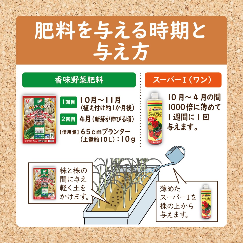 ¡Ö¹áÌ£ÌîºÚÈîÎÁ¡×¤ÎÍ¿¤¨Êý 1²óÌÜ¡§10·î¡Á11·î¡Ê¿¢¤¨ÉÕ¤±Ìó1¤«·î¸å¡Ë 2²óÌÜ¡§4·î¡Ê¿·²ê¤¬¿¤Ó¤ëº¢¡Ë ¡Ê»ÈÍÑÎÌ¡Ë 65cm¥×¥é¥ó¥¿¡¼¡ÊÅÚÎÌÌó10L¡Ë¡§10g ¡ÊÍ¿¤¨Êý¡Ë ³ô¤È³ô¤Î´Ö¤ËÍ¿¤¨·Ú¤¯ÅÚ¤ò¤«¤±¤Þ¤¹¡£