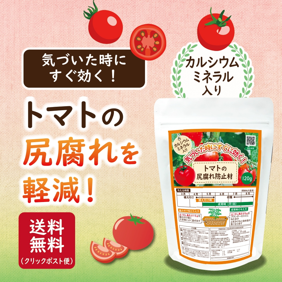 トップ > お得な運賃込商品 > トマトの尻腐れ防止材 120g×2袋入り
