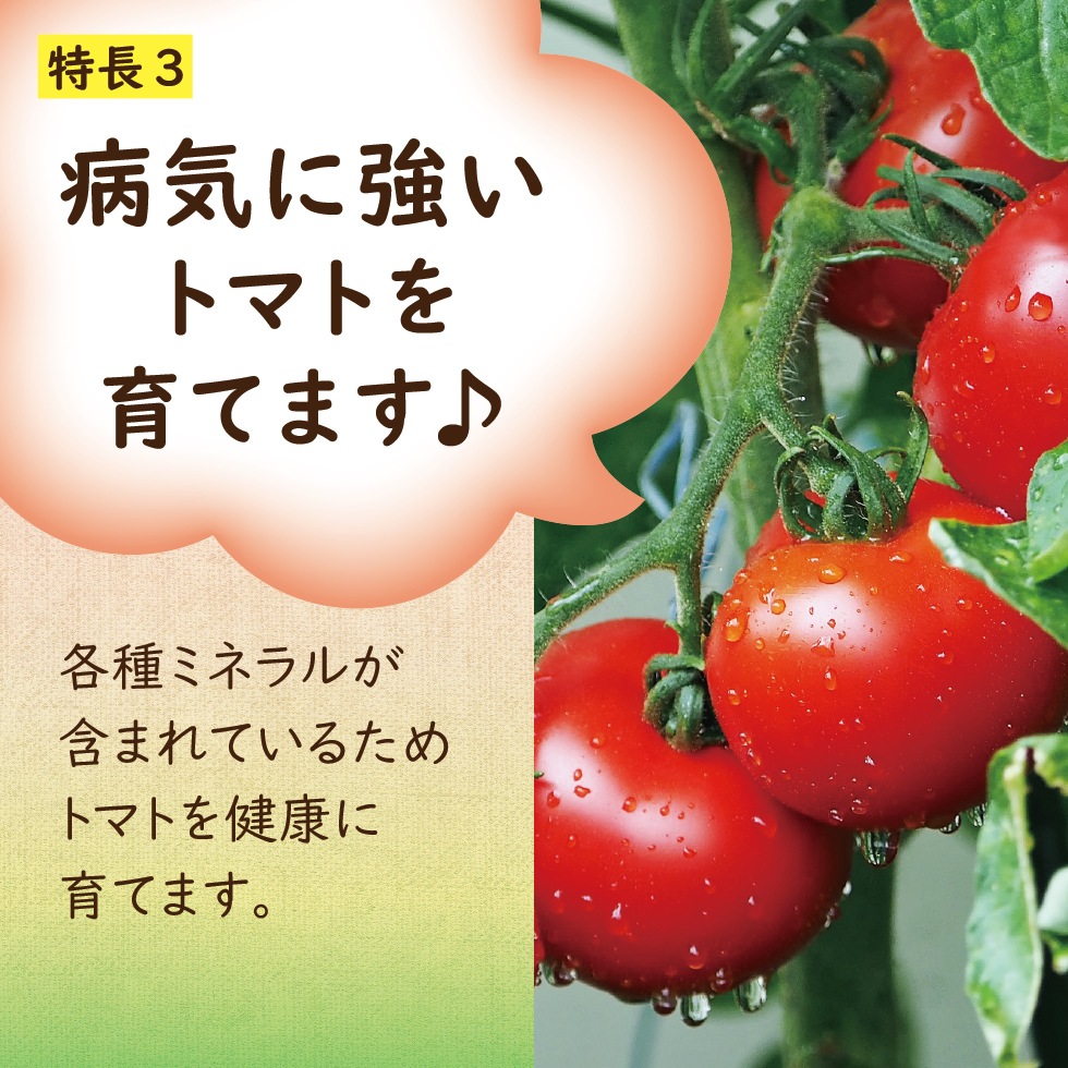 ●各種ミネラルが含まれているため、トマトを健康に育てます。