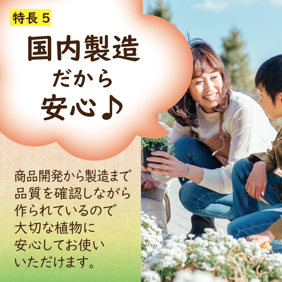 ●商品開発から製造まで品質を確認しながら作られているので、大切な植物に安心してご使用いただけます。